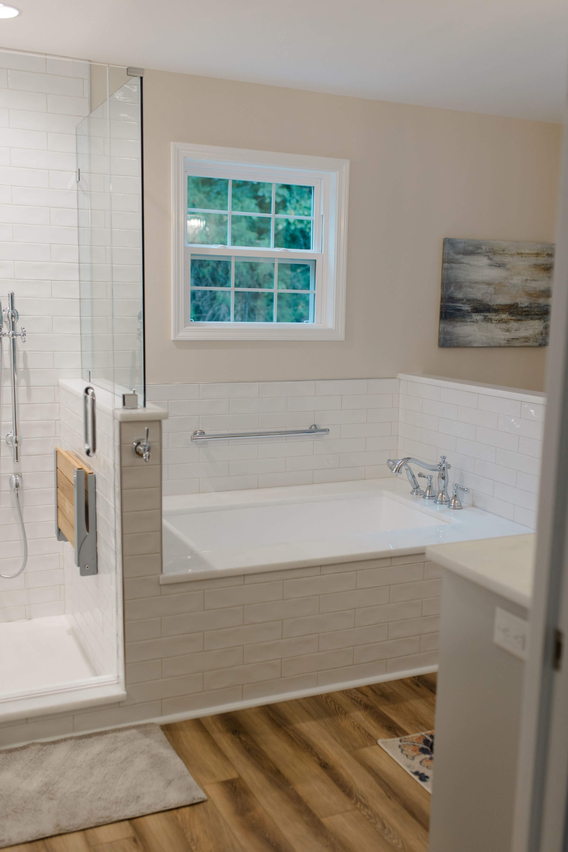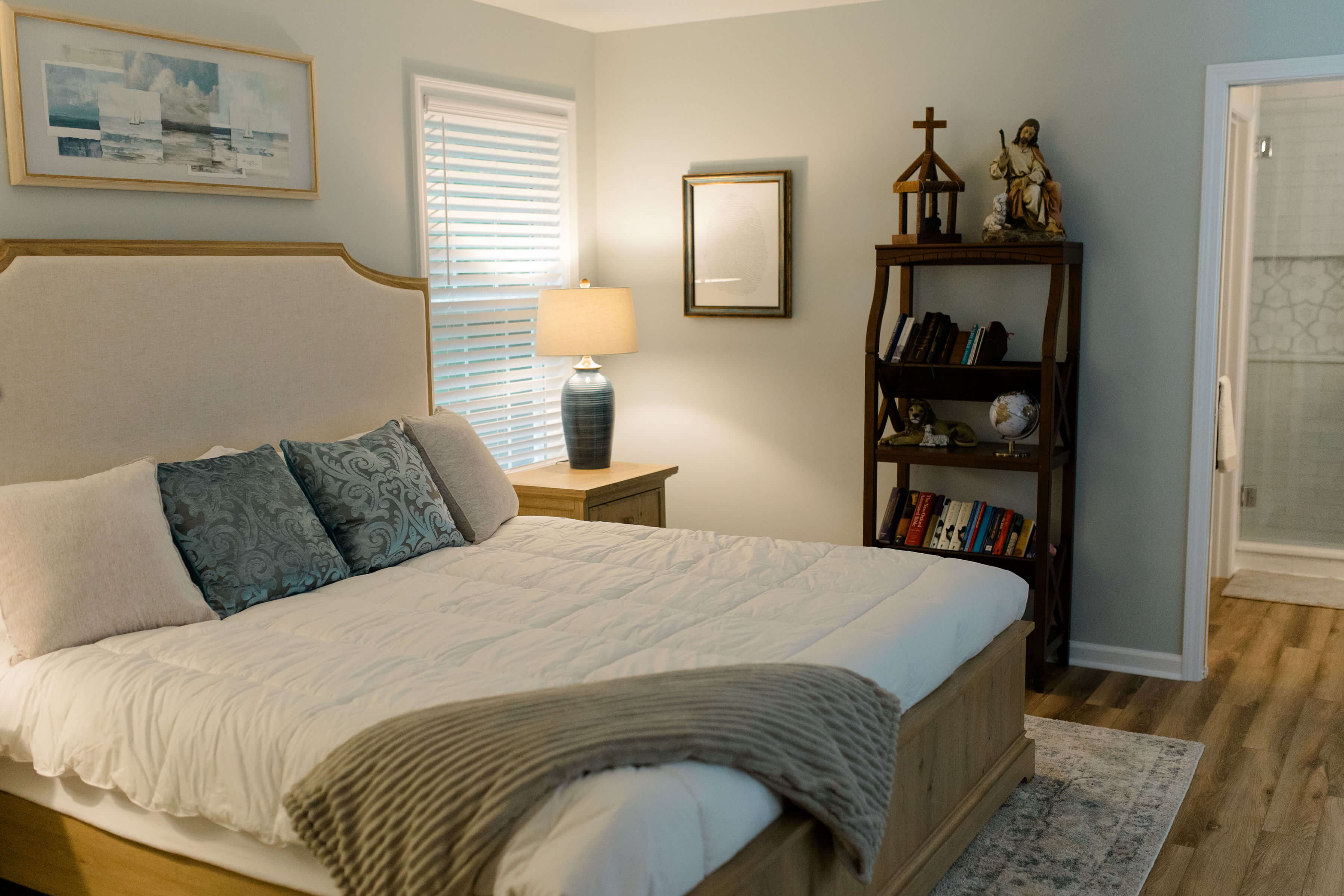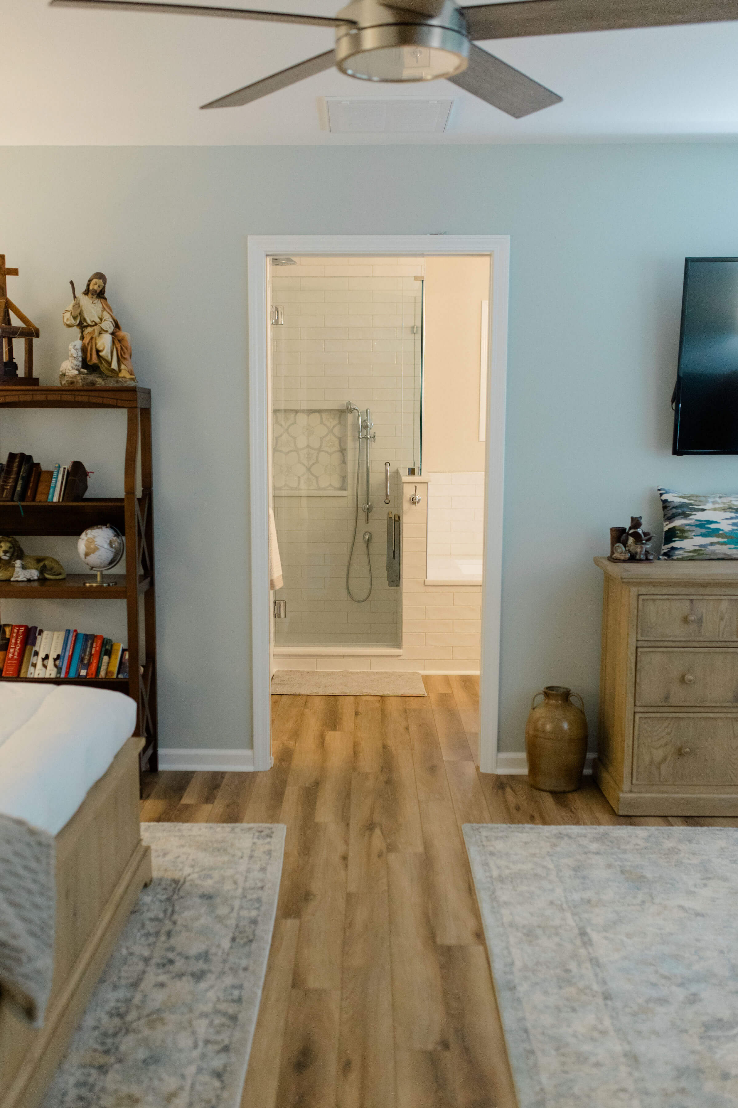 This master suite addition features a spacious design complete with a Japanese soaker tub and walk-in shower for ultimate relaxation. The bedroom is complemented by a cozy reading area, creating a serene retreat for unwinding.
